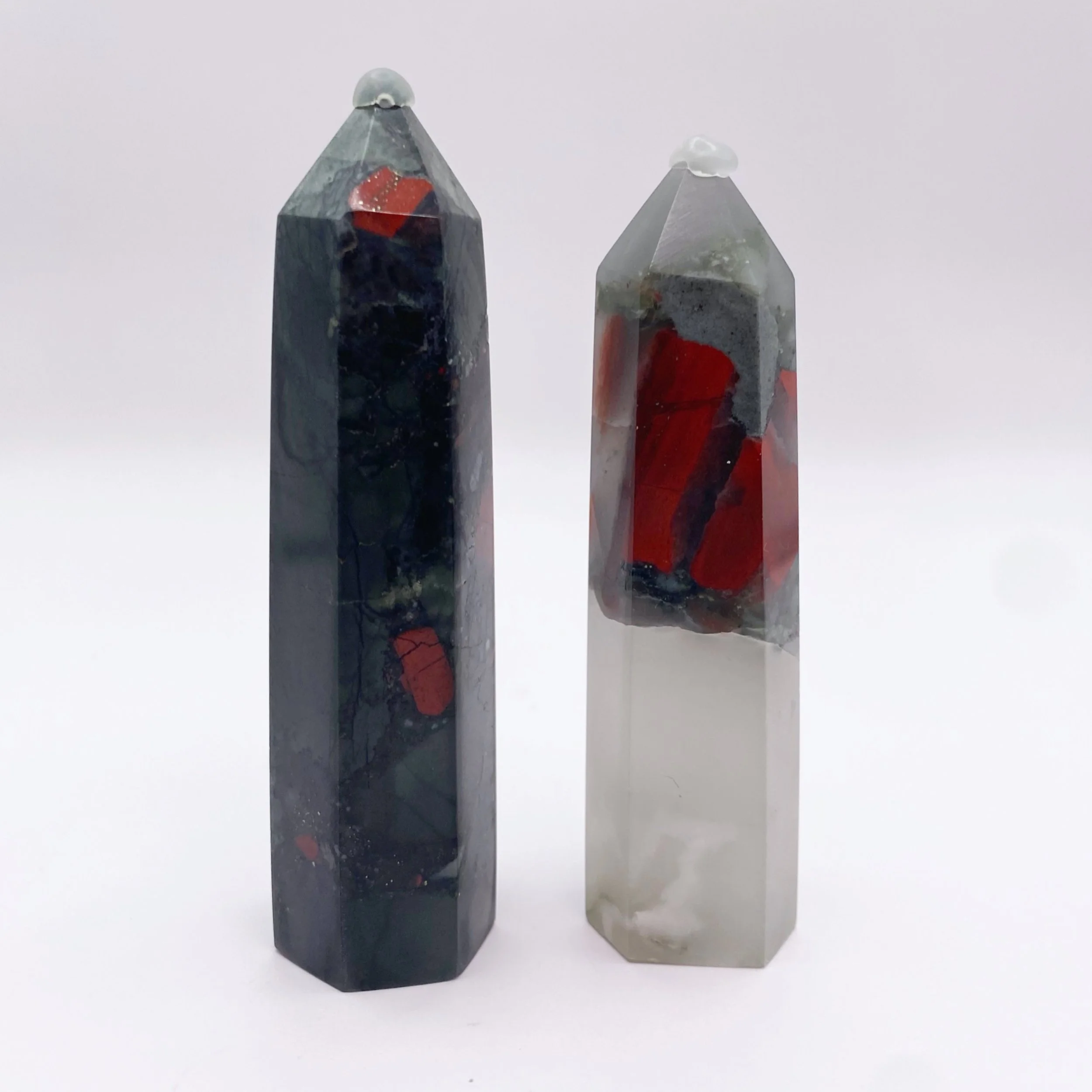 STRENGTH.  HEALING. COURAGE. African Bloodstone is a form of Chalcedony and Jasper, also known as Setonite, and has been mined in Madagascar, Ethiopia and it has been used in jewelry dating back to ancient Egypt/Kemet culture.  Energetically, Bloodstone is a cleanser and amplifier stone, meaning that it removes or blocks negative influences and vibrations, allowing positive healing vibrations of a higher frequency to naturally come in.  This transformative crystal also teaches us how to be flexible in order to solve problems and to recognize that chaos is sometimes necessary if transformations are to take place. No broken eggs? No Omelet. Energy practitioners say it can help with infections and a depleted immune system, including detoxification of the circulatory,  lymphatic systems and supporting the liver, kidneys & lungs.  Setonite also aligns the heart with the root chakra allowing the user to use discernment in seeing past external ‘perceived’ chaos, cut right to the chase, lift the mental fog, and plow forward with confidence. This stone is very much like how garlic works on the physical body, purging energetic parasites in the auric body; strong, effective, and not for sensitive individuals in heavy doses.  Like Moldavite, if you are more sensitive, limit your hours with this stone and place on selenite to allow it, and you, to chill.  Come back to it at another time, it will be there when you are ready.